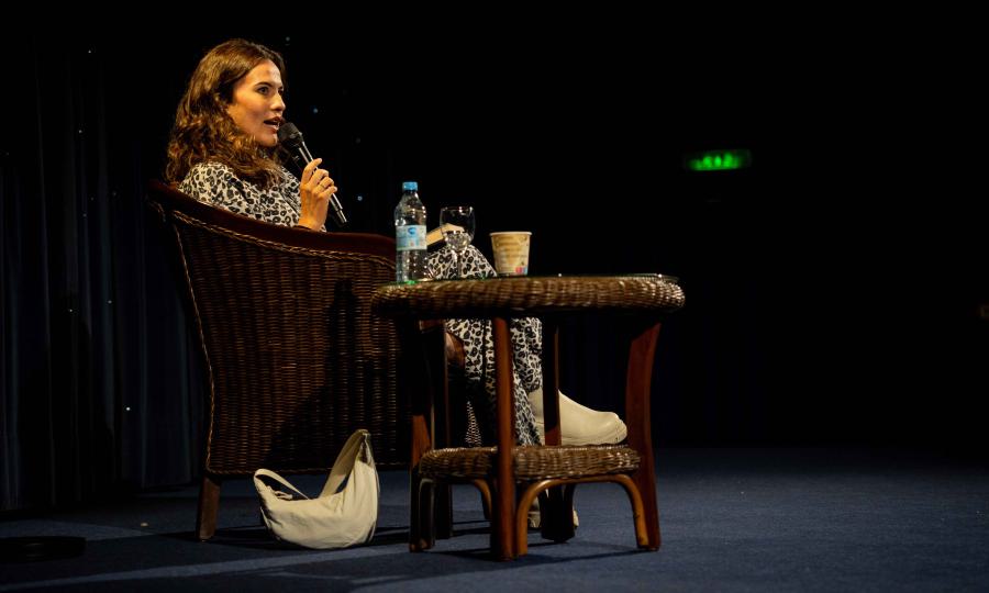 In der vergangenen Woche stellte die Moderatorin, Podcasterin und Autorin Mona Ameziane ihr Buch „Auf Basidis Dach“ vor und sprach von ihren Erfahrungen eines Lebens zwischen zwei Kulturen. 230 Schülerinnen und Schüler nahmen mit ihren Lehrkräften an der Lesung im Kinodrom teil.
