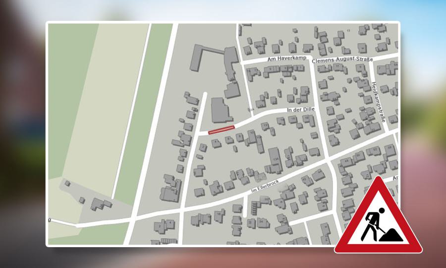 Aufgrund von Kanalarbeiten wird die Straße „In der Dille“ in Höhe der Hausnummer 13 gesperrt. Die Arbeiten beginnen am 27. April und werden voraussichtlich am 29. Mai beendet.