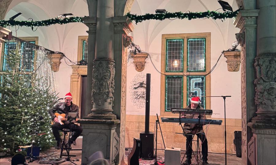 Weihnachtsliedern und modernen Weihnachtssongs zu Gast am Historischen Rathaus.