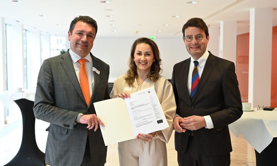 Die Stadt Bocholt erhält für ihre Bildungsarbeit erneut eine finanzielle Unterstützung des Landes Nordrhein-Westfalen in Höhe von 34.920 Euro. Bürgermeister Christian Mangen und Isabel Testroet, Geschäftsbereichsleiterin VHS und Junge Uni, nahmen den Förderbescheid für das Projekt „Vielfalt (mit)gestalten – Fokus 2026: Bildungswege demokratisch, professionell, gemeinsam und nachhaltig stärken“ in Münster entgegen.