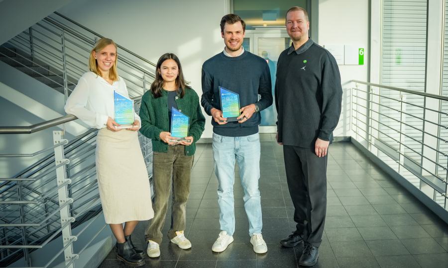 Bocholts Sportdezernent Björn Volmering (rechts) überreichte die Preise an Vivian Langert (v.l.), Juli Becker und Phil Bauhaus.