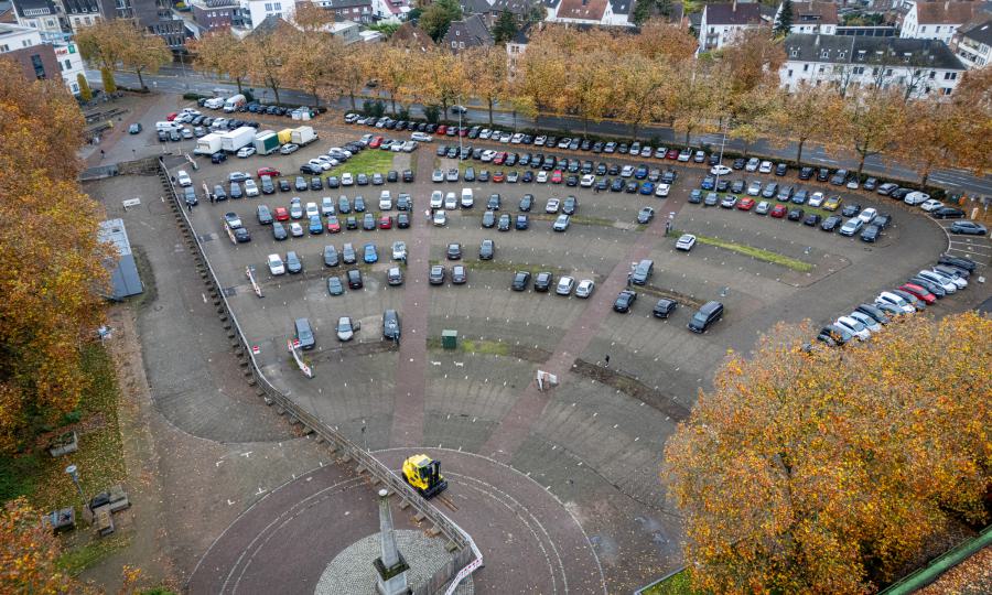Die Arbeiten zur Installation von 65 Erdwärmesonden rund um das Rathaus schreiten voran. Der nächste Schritt der Baulogistik betrifft nun zusätzliche Bereiche des Berliner Platzes. Ab dem 15. Dezember beginnt die sogenannte Bauphase 2. Sie macht es erforderlich, 15 Parkplätze in der ersten Rundung rund um den Obelisken zu sperren. Die Zufahrten bleiben weiterhin möglich, jedoch steht in diesem Bereich deutlich weniger Parkraum zur Verfügung. Ein weiterer Schritt folgt zu Beginn des kommenden Jahres: Ab dem 2. Januar 2026 entfallen zusätzliche 42 Parkplätze in der zweiten Rundung des Platzes.