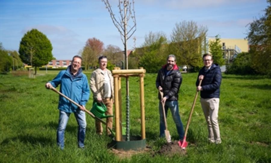 Anlässlich des Tags des Baumes ist in der Parkanlage Bocholt-Feldmark eine Zitterpappel gepflanzt worden. Die Patenschaft für den Baum des Jahres 2026 übernimmt in diesem Jahr der Deutsch-Syrische Verein Bocholt e.V. Der städtische Weg der Jahresbäume wächst damit um ein weiteres Exemplar.