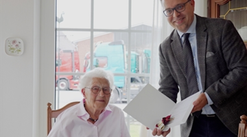Persönliche Glückwünsche von Bürgermeister Thomas Kerkhoff nahm jetzt die Bocholter Bürgerin Elisabeth Harhuis entgegen. Sie feierte am Sonntag ihren 100. Geburtstag.