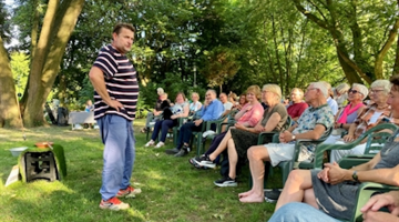 Der bekannte Filmschauspieler Peter Trabner präsentierte jetzt in Bocholt an der Podiumsbrücke sein „systemrelevantes Theaterspektakel für einen Mann und einen Baum“.