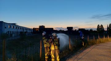 Montag, Mai 16, 2022 - 08:40Am Sonntag um 21:45 Uhr wurde die Feuerwehr zu einem Flächenbrand am Radweg zwischen der Industriestraße und dem Pleystrang gerufen. Insgesamt brannte eine Grasfläche von ca.