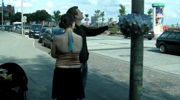 „Wolke“ wird an Laterne am Marktplatz aufgehängt // Deutsch-niederländisches Kunstprojekt