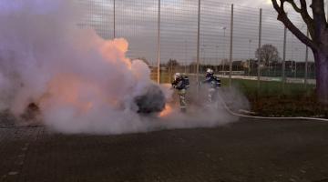 Nähe des Sportplatzes in Bocholt Ortsteil Suderwick, stand ein PKW in Vollbrand. Auf der Anfahrt war eine starke Rauchentwicklung zu sehen.
