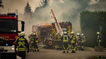 Die Feuerwehr Bocholt war heute Nachmittag mehrere Stunden im Einsatz, um ein Feuer in einem Wohnhaus mit angrenzendem Gewerbebetrieb zu löschen.