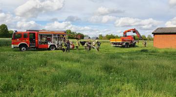 Die Feuerwehr wurde um 17.23 Uhr zu einem Bauernhof in Liedern gerufen.