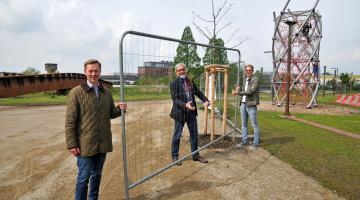 Quartiersspielplatz mit einzigartigem Gesicht // Bänke kommen in den nächsten Wochen // Spielgeräte mit Bezug zur Textilindustrie