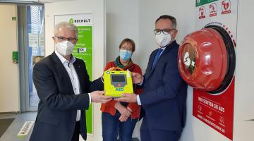 Dienstag, März 9, 2021 - 18:22Die Stadtsparkasse Bocholt hat der Stadtverwaltung jetzt drei Defibrillatoren im Wert von 6.500 Euro zur Verfügung gestellt.