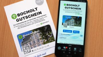 Der „Bocholt-Gutschein“ kommt gut an und spült in Corona-Zeiten Geld in die Kassen von lokalem Handel und Gastronomie: Das berichten Mechthild Hoffs und Dirk Schönicke von der B