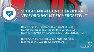 Im Notfall sind wir immer für Euch da! Bitte ruft weiterhin den Notruf 112 an, falls Ihre Symptome habt, die zum Beispiel auf einen Schlaganfall oder Herzinfarkt hinweisen.